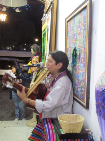Walking back pass past the central plaza, a man playing the pan flutes and guitar drew us into an artesian market.